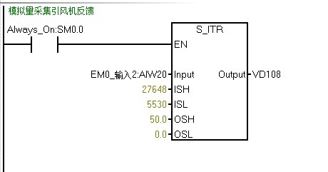 难点:模拟量采集S_ITR是过程量转工程量,调用库的时候,ISH和ISL应该是过程量OSH和OSL是工程量浮点数。反之模拟量输出反过来,计算公式注意的是,AI输入为整数I需要先转换成双整数DI,DI转成R浮点数,因为I是无法直接转成R的。